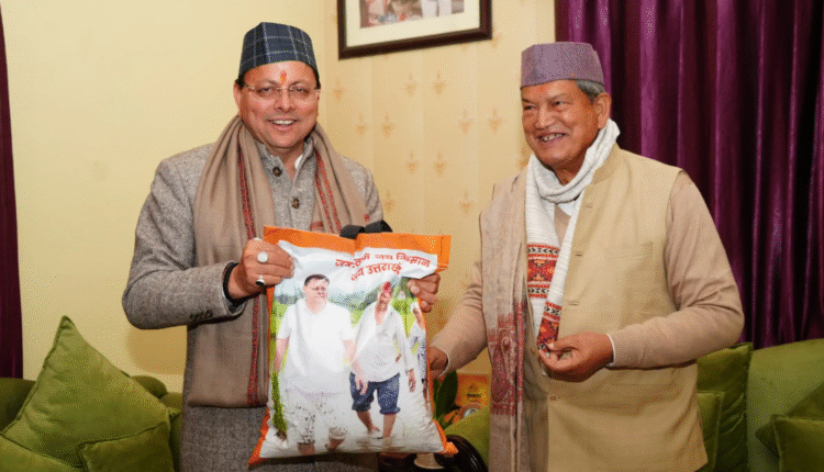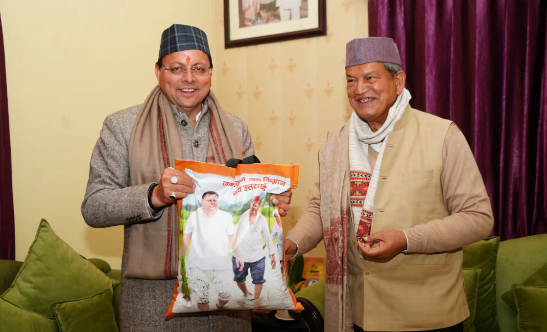 मुख्यमंत्री धामी ने हरीश रावत को भेंट किया अपने खेत का चावल