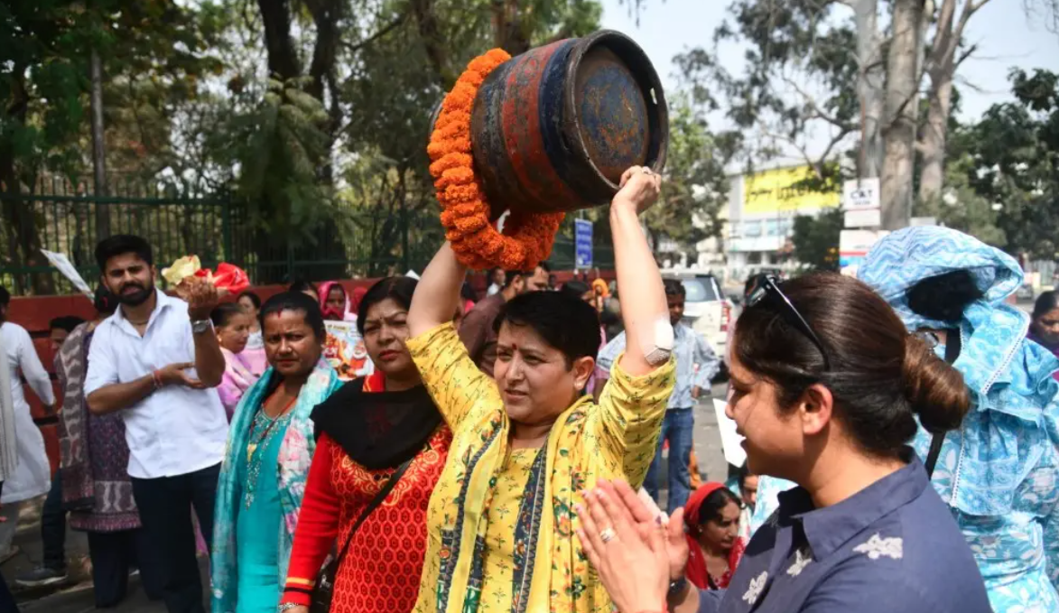 देहरादून: रसोई गैस सिलेंडर के लगातार बढ़ते दामों के विरोध में अखिल भारतीय महिला कांग्रेस की राष्ट्रीय अध्यक्ष अल्का लाम्बा के आह्वान पर देशभर में विरोध प्रदर्शन किए जा रहे हैं। इसी क्रम में सोमवार को उत्तराखंड प्रदेश महिला कांग्रेस की अध्यक्ष ज्योति रौतेला के नेतृत्व में देहरादून में महिला कांग्रेस कार्यकर्ताओं ने अनोखे अंदाज में प्रदर्शन किया।