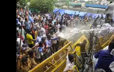 हिरासत में लिए गए कार्यकर्ताओं को पुलिस वाहनों से ले जाया जा रहा था, तभी अन्य कार्यकर्ताओं ने वाहनों को रोक दिया और अपने साथियों को उतारने का प्रयास किया। इस दौरान पुलिस और प्रदर्शनकारियों के बीच तीखी झड़प भी हुई। हालात को काबू में करने के लिए पुलिस ने पानी की बौछार का इस्तेमाल किया और प्रदर्शनकारियों को आगे बढ़ने से रोक दिया।