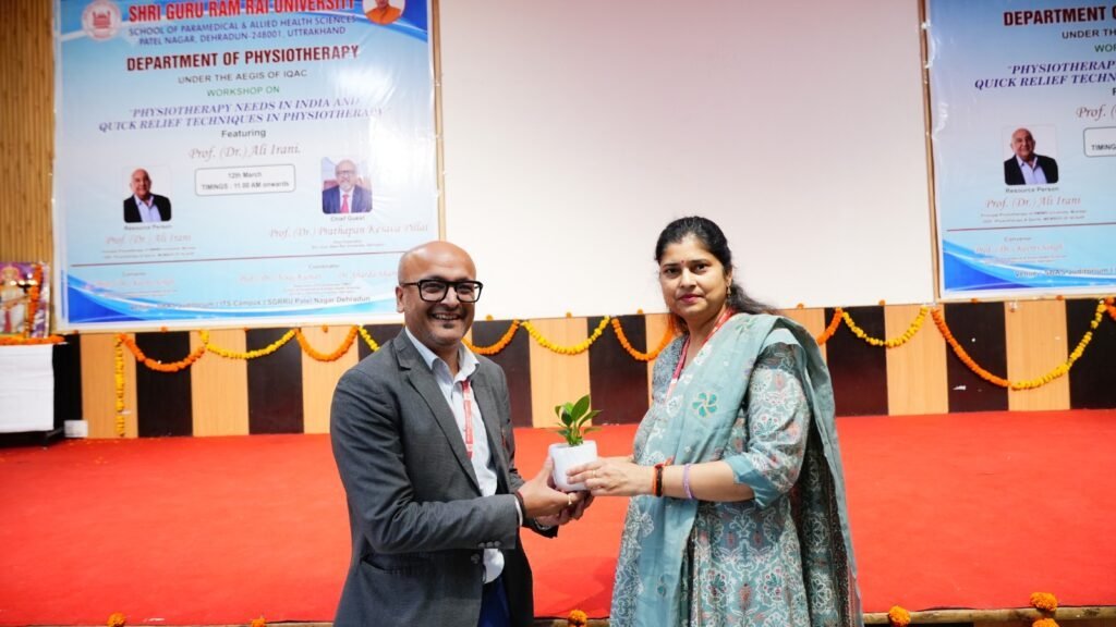 देहरादून: श्री गुरु राम राय विश्वविद्यालय के स्कूल ऑफ पैरामेडिकल एंड एलाइड हेल्थ साइंसेज के फिजियोथेरेपी विभाग द्वारा बीपीटी एवं एमपीटी के छात्र-छात्राओं के लिए एक दिवसीय विशेष कार्यशाला का आयोजन किया गया। कार्यशाला का उद्देश्य छात्र-छात्राओं, विशेषकर इंटर्न्स को फिजियोथेरेपी की विभिन्न स्ट्रीमों की जानकारी देकर उन्हें अपनी रुचि और भविष्य की संभावनाओं के अनुसार सही स्ट्रीम का चयन करने के लिए मार्गदर्शन प्रदान करना था।