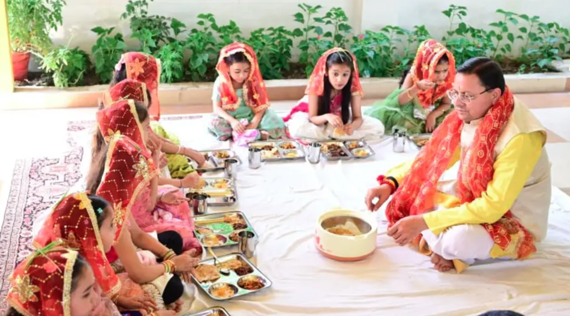 मुख्यमंत्री धामी ने नवरात्र में कन्या पूजन किया