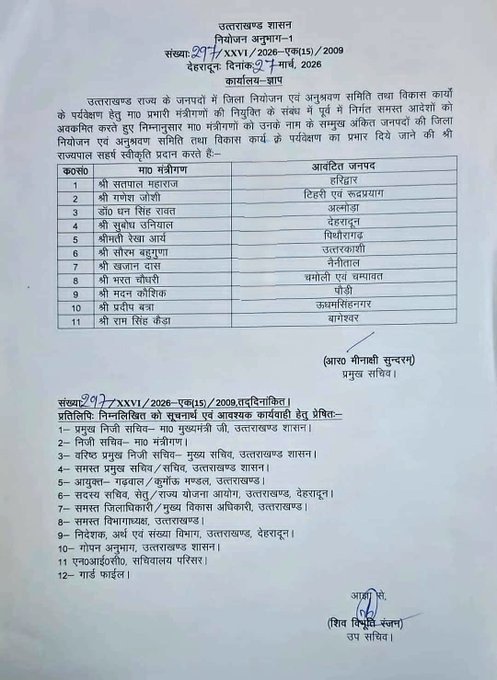 इस बदलाव के तहत 11 मंत्रियों को विभिन्न जनपदों की जिम्मेदारी सौंपी गई है। प्रभारी मंत्री अब जिले में विकास योजनाओं की नियमित समीक्षा करेंगे, जिससे विभागों के बीच बेहतर समन्वय बनेगा और कामों में तेजी आएगी।