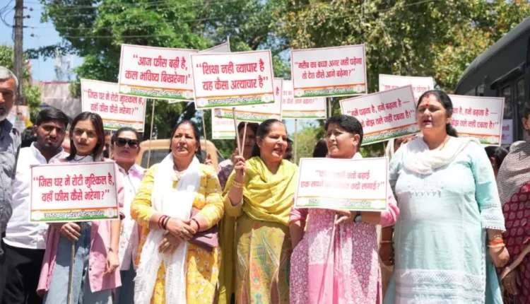 निजी स्कूलों की मनमानी फीस पर महिला कांग्रेस का हमला, मंत्री आवास का घेराव