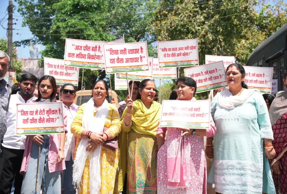 इस दौरान महिला कांग्रेस की प्रदेश अध्यक्ष ज्योति रौतेला ने राज्य सरकार पर तीखा हमला बोलते हुए कहा कि निजी स्कूलों द्वारा मनमाने ढंग से फीस बढ़ाकर अभिभावकों का आर्थिक शोषण किया जा रहा है। उन्होंने आरोप लगाया कि कई स्कूल अभिभावकों को निर्धारित दुकानों से ही किताबें खरीदने के लिए मजबूर कर रहे हैं, जिससे कमीशनखोरी को बढ़ावा मिल रहा है।उन्होंने कहा कि इस स्थिति से प्रदेश का हर अभिभावक परेशान और असहाय महसूस कर रहा है, जबकि सरकार मूकदर्शक बनी हुई है।