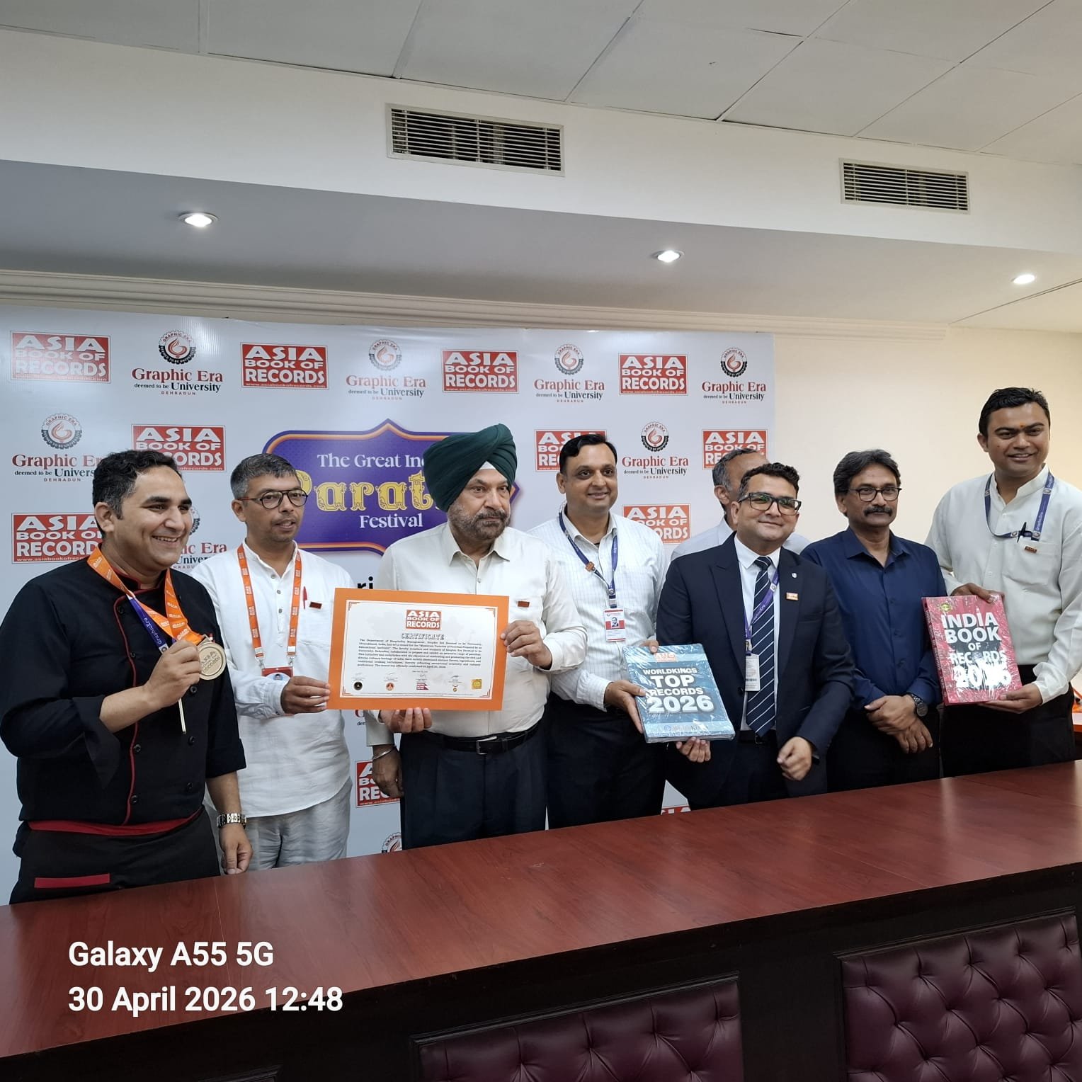 देहरादून: ग्राफिक एरा डीम्ड यूनिवर्सिटी के छात्रों और शिक्षकों ने एशिया बुक ऑफ रिकॉर्ड्स में एक नया कीर्तिमान स्थापित किया है। महज 1 घंटा 28 मिनट में 554 विभिन्न प्रकार के पराठे तैयार करके टीम ने यह उपलब्धि हासिल की।